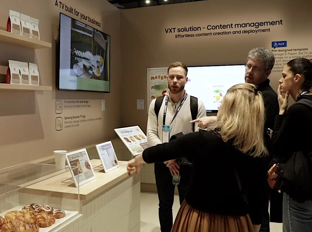 Desde el stand de la compañía, Jiménez Carrasco destacó que la estrategia de Samsung pasa por ofrecer soluciones completas que integren hardware, software y servicios para diferentes verticales de negocio: “Este año estamos presentando un montón de novedades, entre ellas el Spatial Display que podéis ver detrás mío en distintos tamaños, que está llamado a romper el mercado del retail con una gran innovación que es el 3D generado ad hoc”.