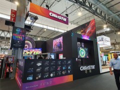 En su estand, Christie ha instalado una combinación de proyectores apilados M 4K25 RGB de láser puro y MicroTiles Led para crear un logo mapeado. También se puede ver un ...