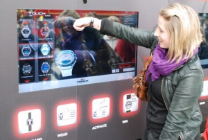 La página de inicio de la aplicación despliega los tres modelos de reloj, cada uno con su propia sección. Las secciones muestran las colecciones en imágenes gigantes que llenan la pantalla e incluyen un buscador de boutiques, un video individual del modelo, un reloj para ver el movimiento de las manecillas y la posibilidad de compartirlo con amigos vía email o redes sociales. Adicionalmente, los usuarios de iPhone pueden usar la característica de realidad aumentada para probarse los relojes virtualmente.