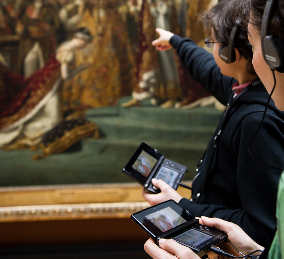 Las audioguías del museo del Louvre son, desde ahora, videoconsolas. Como parte de un acuerdo de colaboración entre Nintendo y el museo parisino, la galería de arte ofrece a sus visitantes consolas Nintendo 3DS con un software específicamente diseñado para que sirvan de audioguía del museo. La Audioguide Louvre-Nintendo 3DS se presenta, además, como una herramienta para profundizar en el conocimiento de la cultura del Arte de un modo ameno e interactivo.