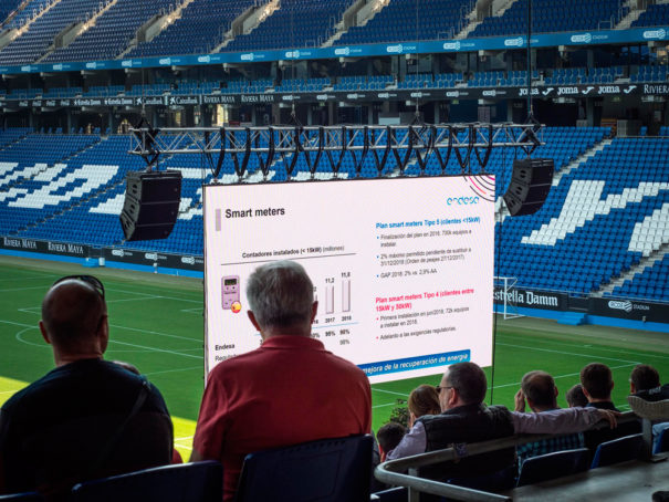 Con la asistencia de unas ochocientas personas, Endesa ha celebrado sus jornadas de infraestructura y redes, celebradas en Barcelona, en el estadio del RCD Español, cuya producción, montaje y asistencia técnica durante el evento ha confiado a Sono Tecnología Audiovisual.