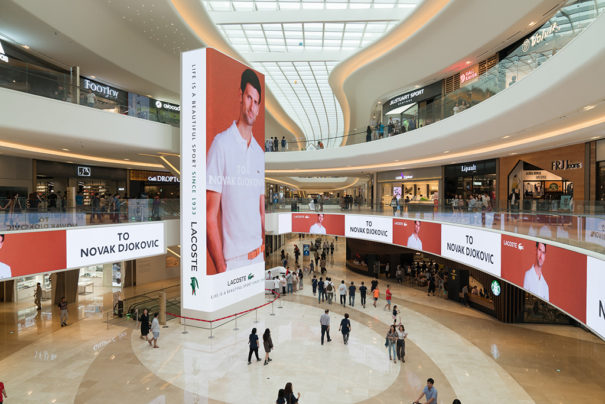 Con una superficie de más de 135.000 metros cuadrados, con 560 marcas nacionales e internacionales y un centenar de restaurantes, el centro comercial cuenta con un tragaluz de 280 metros de largo que proporciona iluminación natural. Para proporcionar a los compradores una óptima experiencia de compra inolvidable, Starfield ha instalado una pantalla Led curva de 15 metros de altura que se presenta como la pieza central del nuevo centro comercial. Para su diseño se ha utilizado la tecnología de Absen.