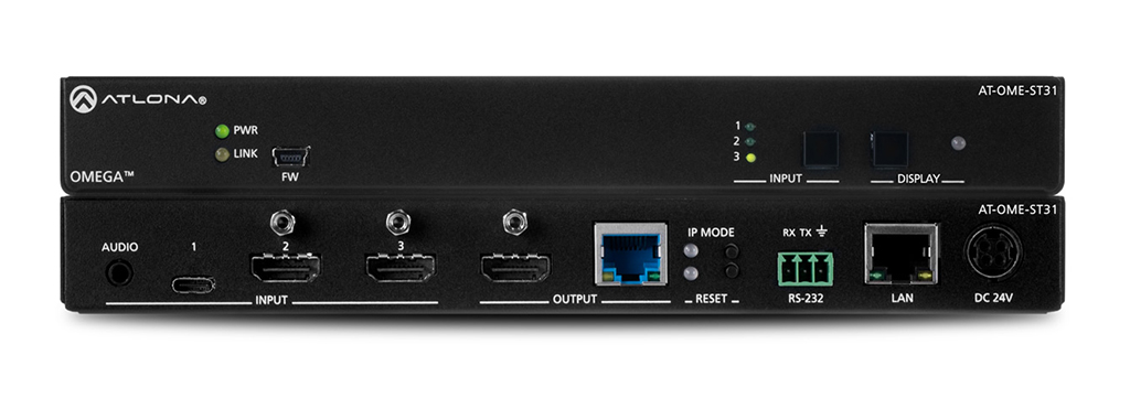 Por último, el conmutador AT-OME-ST31A es un equipo 3×1 4K/UHD y transmisor HDBaseT que cuenta con dos entradas HDMI junto con una entrada AV USB-C, que proporciona una interfaz sin adaptador para la última generación de portátiles y dispositivos móviles.