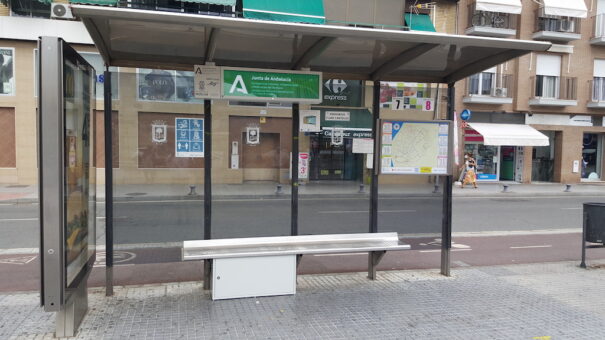 Alfalite realiza una instalación pionera con sus paneles Led RGB en las marquesinas de autobús de Huelva