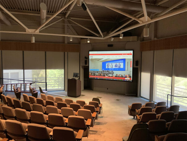 Una Supernova Infinity, en formato de 155 pulgadas, se ha instalado en el Scientific Laboratory de California, en una estancia llena de ventanas.
