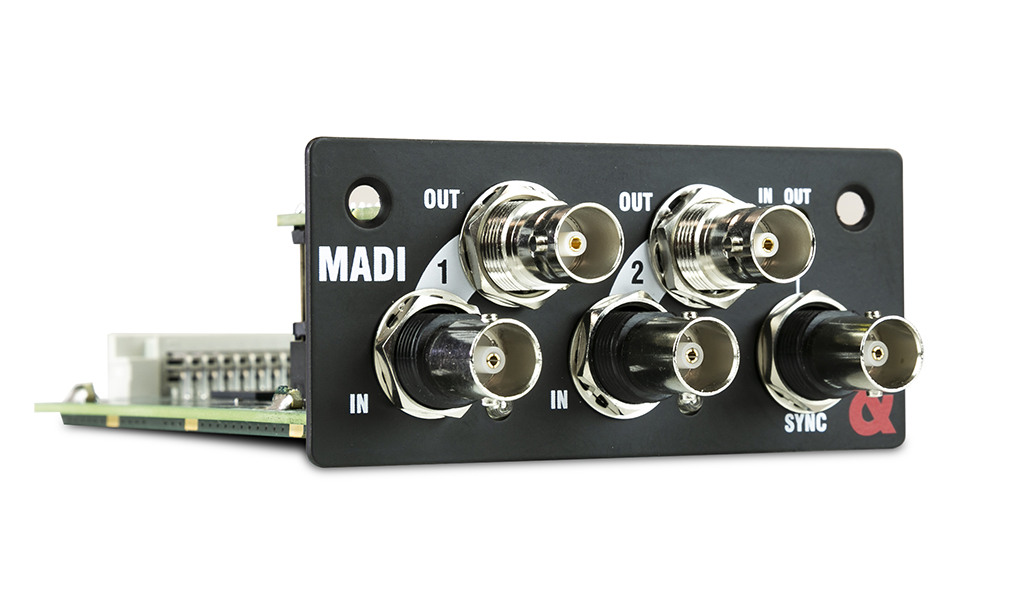 Además de las tarjetas opcionales Dante, SLink y Waves existentes, la interfaz MADI 64×64 (48/96kHz) abre nuevas posibilidades de integración con sistemas de broadcast y grabación en unidades móviles y consolas de terceros.
