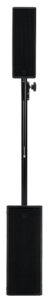 La caja compacta puede utilizarse tanto en orientación horizontal como vertical o emparejarse para configuraciones de subwoofers cardioides, en arco y otras mediante RDNet. También incluye soportes de equilibrio para mejorar la estabilidad vertical y un logotipo giratorio.