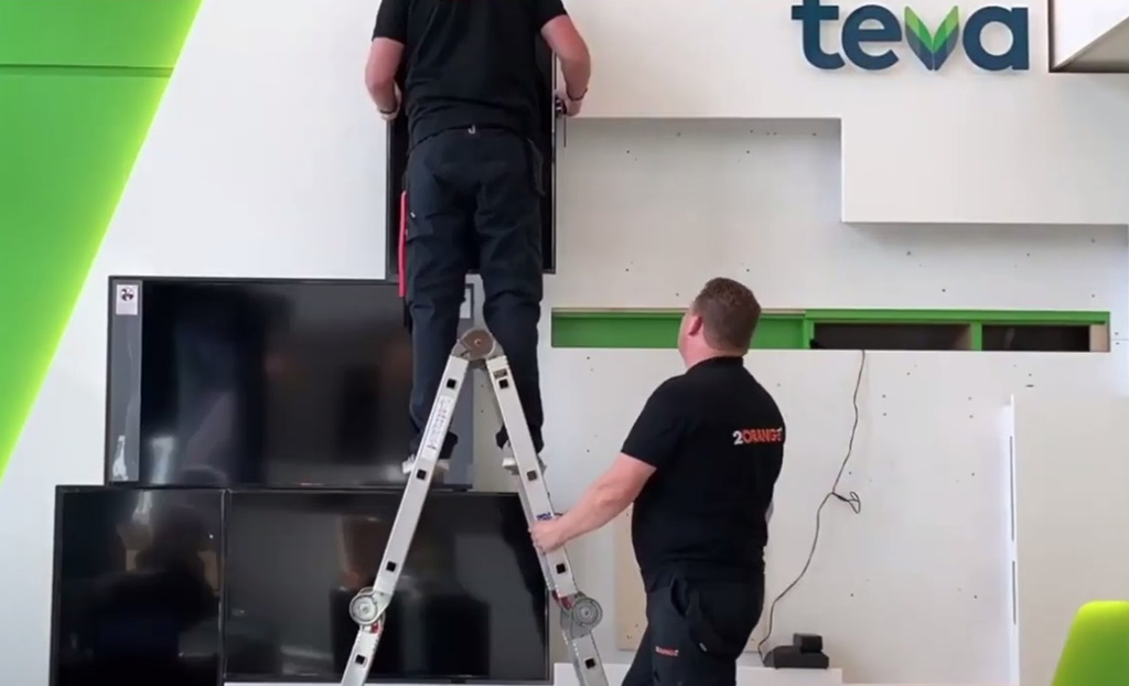 Para su su sede en los Países Bajos, Teva Pharmaceuticals buscaba una solución de digital signage que pasaba por un llamativo y creativo videowall, configurado con pantallas de diferentes tamaño y montada en diferentes formas utilizando los soportes desplegables de Vogel’s.