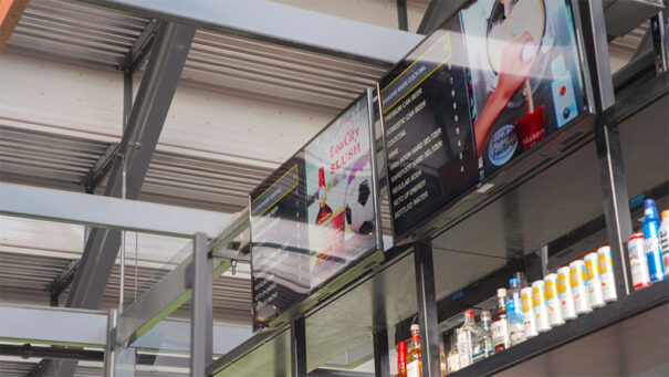 Los restaurantes y bares del estadio también precisaban de un sistema de señalización digital para sus menús en constante cambio y especiales de temporada.