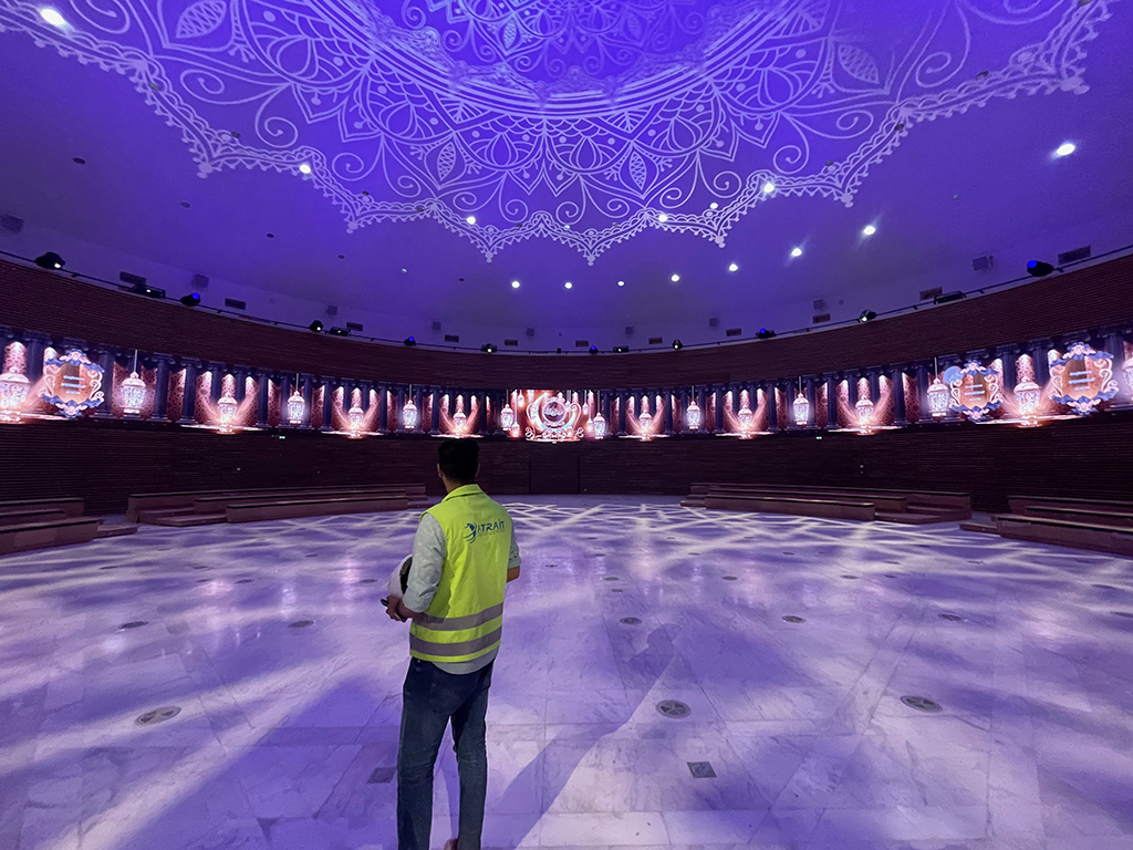 La parte superior de la sala es una cúpula sobre la que descansa una proyección mapeada con 23 proyectores Crimson HD31 y un Crimson WU31 de Christie.
