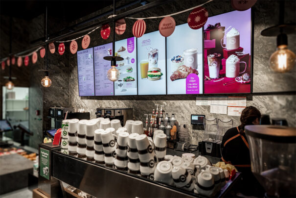 Esta empresa está invirtiendo en hacer que sus cafeterías sean más digitales y modernas mediante la introducción de pantallas digitales cuyo contenido busca mejorar la experiencia del cliente al visualizar de forma más legible los menús y ofertas.