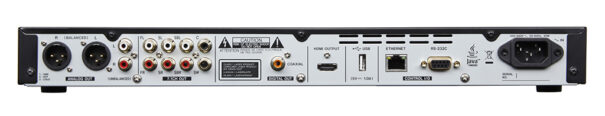 El BD-MP1MKII ofrece una gran cantidad de salidas que incluyen conectores XLR profesionales y conectores RCA para señales estéreo, una matriz de salida de siete canales para sistemas de sonido envolvente 7.1 y una salida HDMI, que puede pasar formatos de audio como Dolby Atmos y DTS-HD a un amplificador AV. También hay una salida de audio digital coaxial para Dolby Audio, DTS y otros formatos profesionales.