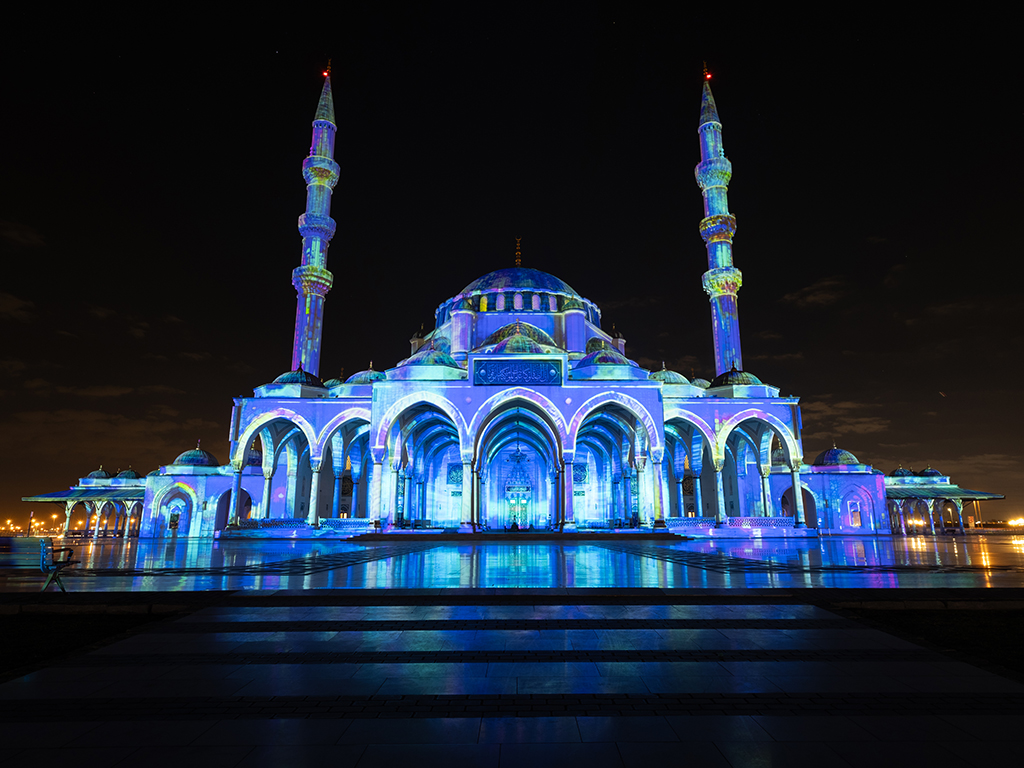 Es el mayor de su género en la región e invita a artistas de renombre internacional a celebrar el entorno construido y natural de la ciudad, utilizando proyecciones a gran escala para iluminar y reimaginar lugares emblemáticos como la Mezquita de Sharjah, el mayor templo de la ciudad, y las espectaculares montañas Hajjar, que dominan la presa de Al Rafisah.