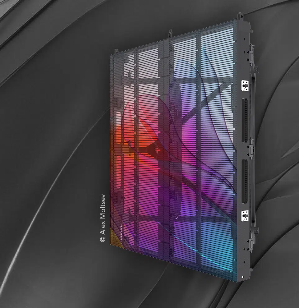Esta innovadora pantalla de serie brilla con un 70% de transparencia, perfecta para presentar contenido creativo. Con un brillo de 5.000 nits y una frecuencia de actualización de 3.840 Hz, reproduce contenido dinámico y nítido para cualquier evento al aire libre. Además, cuando la pantalla se coloca en eventos con música, sus módulos Led triangulares refractan la acústica, creando una experiencia audiovisual inmersiva para el público.