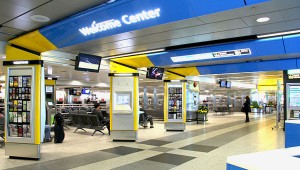 Los centros de bienvenida incluyen 60 kioscos de hotel/alquiler de coches/transporte y 150 デジタルサイネージ画面. その上, en estos centros también hay 30 kioscos de autoservicio que permiten el acceso a la web de la Autoridad Portuaria, que proporciona información sobre vuelos, ホテル, equipajes, 輸送, empresas de alquiler de coches y muchos otros servicios; y 10 ATM.