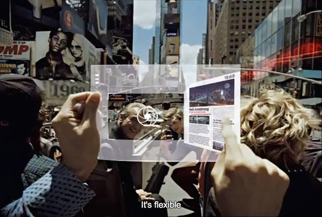 La pantalla tiene el mismo grosor que una hoja de papel y permitiría a los usuarios realizar videollamadas, leer la prensa o disfrutar de imágenes en tres dimensiones a la vez que disfrutan de lo que ocurre en el mundo mirando a través de ella. La tecnología permitiría la traducción en tiempo real en dos idiomas a la vez que mostrar contenidos 3D.