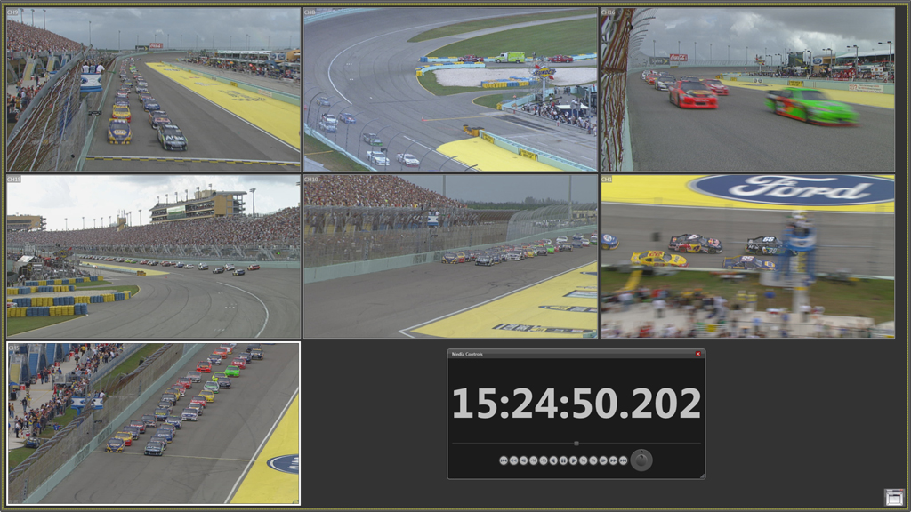 El reproductor de vídeo multicanal Replay de Telestream ofrece una reproducción instantánea, sincronizada y multicanal de múltiples canales de cámara HD para su revisión simultánea y el análisis de los incidentes desde ángulos de cámara diferentes. El reproductor también permite a los oficiales de carrera localizar fácilmente cualquier cámara y moverse hacia adelante o hacia atrás a través de cualquier parte del vídeo.