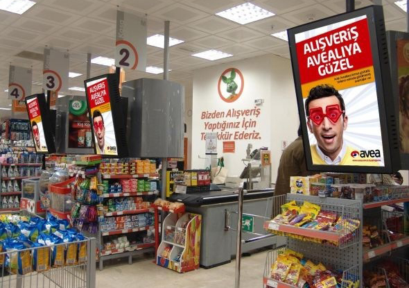El proyecto incluye 562 pantallas digitales ubicadas en 12 tiendas Macrocenter y en 34 almacenes Migros en Estambul, mostrando llamativos anuncios y atractivos avisos para los compradores. Los displays se han ubicado en varias áreas de cada tienda, como lasa zonas de charcutería, carne, pescado, panadería y departamentos de producción, así como en las zonas de caja y en los pasillos, que son áreas que ofrecen una oportunidad de publicidad de alto impacto e impulsan el consumo en el punto de compra.