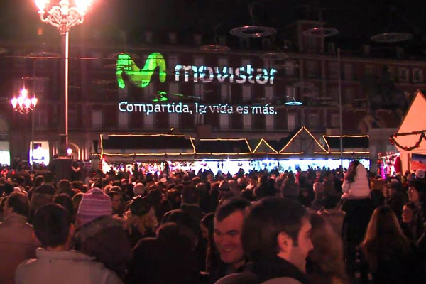 Con el fin de felicitar la Navidad a los visitantes de la Plaza Mayor de Madrid, la agencia Moma desarrolló para Movistar un mapping interactivo en esta emblemática plaza de la capital. La campaña consistió en la proyección de una performance audiovisual interactiva en la que, a ritmo de villancicos navideños, los visitantes de la plaza podían disfrazarse de personajes navideños y sumarse a una coreografía grupal con espectaculares efectos visuales propios de un mapping 3D.