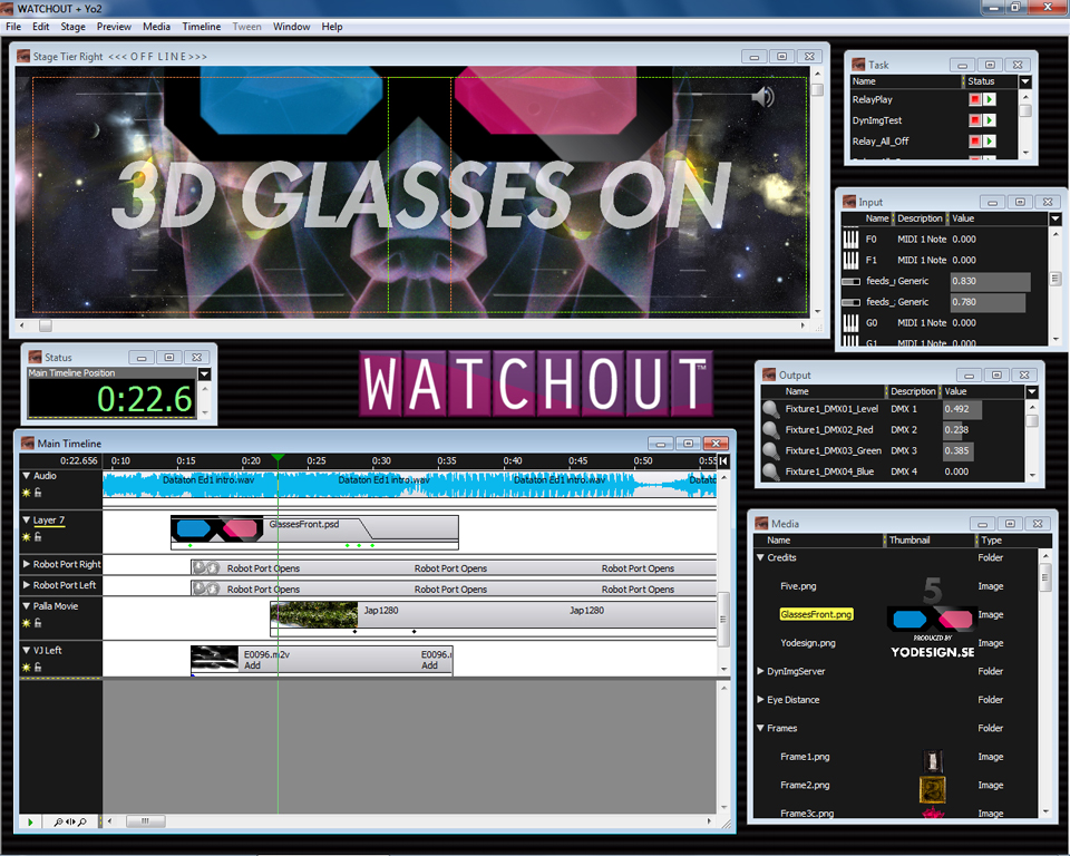 テキスト エディタを使用すると、Photoshop などのグラフィック ソフトウェアを必要とせずに、プレゼンテーション テキストに直前の変更や追加を加えることができます。. バージョン 5.2 バージョンにはDMX学習機能もあります 5.2 照明ショー全体を記録し、Watchout の単一信号から再生します。.