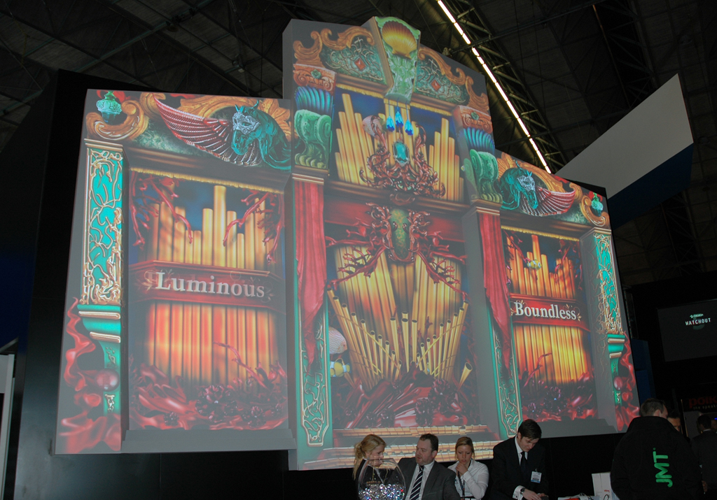 Christie está mostrando en ISE 2012 su amplia gama de desarrollos tecnológicos sobre proyecciones digitales y para ello ofrece en su stand un vídeo mapping con una mezcla de 3 canales de sus nuevos proyectores DLP de 3 chips DLP iluminados por Xenon de Christie Serie J, que proyectan en una gran réplica de una fachada de edificio.