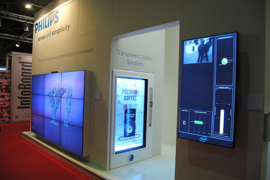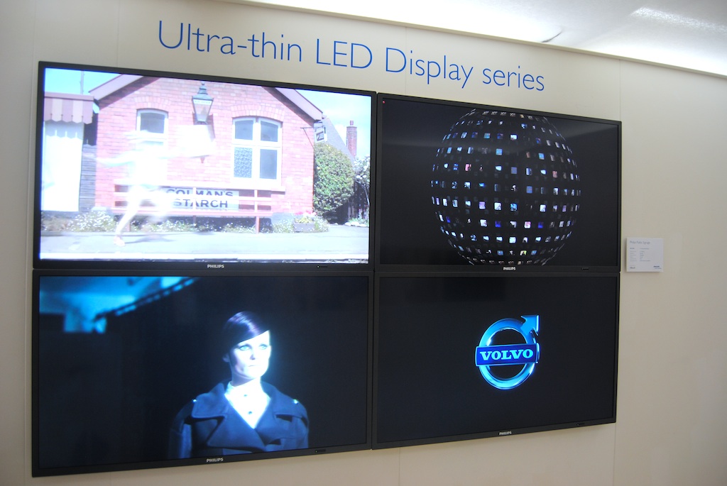 ヨーロッパ統合システムフェアにて, フィリップスは幅広い公共サイネージ ディスプレイを展示しています, 自動立体ディスプレイのいくつかのモデルを含む, オープンプラガブル仕様スロットを備えた新しい E-Line シリーズ (OPS), 55 インチの超薄型ベゼル 3D LED ビデオ ウォールと 120 インチの Candeo LED ディスプレイ.