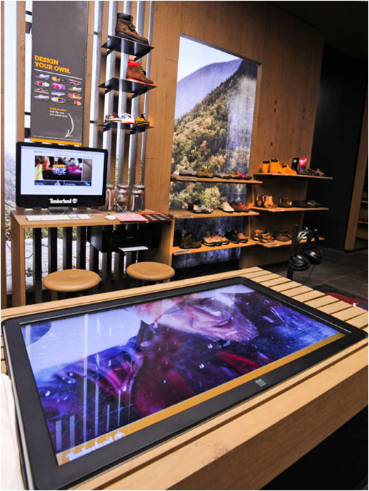 Timberland ha puesto en marcha una experiencia interactiva de compra en la propia tienda utilizando señalización digital. La cadena de tiendas de calzado ha trabajado con la firma de diseño Apologue Experience Design para crear una interacción entre el producto y la innovación en digital signage, para transformar “el típico punto de venta táctil en una herramienta de comunicación más significativa que ofrece información relevante y contenidos atractivos para el consumidor universal de Timberland.