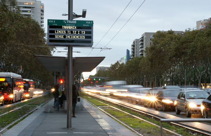 バルセロナのトラムは、トラムベスのフランセスク・マシア停留所とバルセロナ・トランベソスのサント・アドリア・デル・ベソスターミナル駅での待ち時間情報を表示する2枚の発光パネルの設置をラフォルジャ・システマス社に依頼した。.