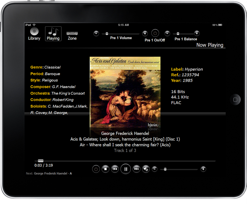 El soporte de Wasapi, de ficheros en DSD, y de archivos DXD de 32Bits-352.8KHz garantiza reproducciones “bit perfect” y la mayor calidad audiófila del momento. Un software de control remoto basado en iPad con integración de control de los dispositivos de los fabricantes OEM permite visualizar toda la colección de música y operar remotamente tanto el servidor como los preamplificadores/DACs y streamers de los OEMs.