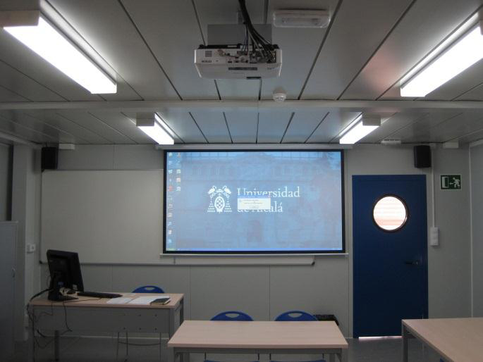 Pero más allá de la dotación individual de las aulas del edificio, también se dispuso un proyector interactivo de ultracorta distancia modelo EB-450Wi o EB-455Wi en distintos seminarios de la UAH. Estos proyectores permiten llevar la interactividad al aula pensando no sólo en la interacción profesor-alumnado, sino también la mejor relación calidad-precio. Porque estos proyectores no requieren ir acompañados de una PDI (pizarra digital interactiva), pues incorporan la interactividad en el propio dispositivo y transforman cualquier superficie en una pizarra digital. Estos proyectores se instalaron en el nuevo edificio docente, ubicado muy próximo a la céntrica glorieta de Quevedo en Madrid.