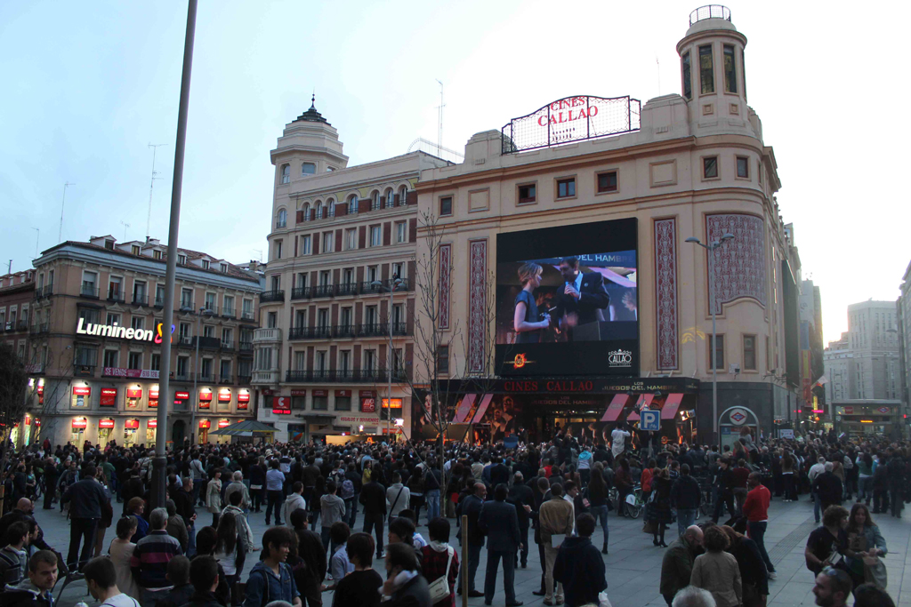 この革新的な形式により、ブランドは市民と交流し、大規模なイベントに参加することができます。. 7月から 2011, 5 つの大型 LED スクリーンは、リトアニアのユーロバスケットでスペインのバスケットボール チームの勝利を祝うイベントなどの大規模なイベントを直接目撃してきました。, ダビド・オテロの「エル・ペスカオ」などのコンサート, のお祝い 50 ウエストサイド物語の誕生日, マドリッド・プレミア・ウィークまたは欧州電子商取引カンファレンス「EEC'11」. 加えて, スクリーンを通して, マドリードの住民と観光客は、世界青年デーと同じくらい特別なライブ イベントに参加できました WYD マドリッド 2011 またはヒストリーチャンネルのドキュメンタリー「米国を変えた102分」の独占放送。’ 9/11の10周年を記念して.