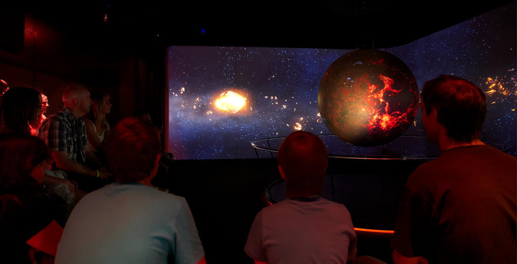 Dos veces al día se proyecta un espectáculo multimedia totalmente automatizado que puede ser controlado por el personal de Technorama a través de una pantalla táctil, para un máximo de 60 人々は同時に, aunque no es raro que se realicen sesiones adicionales del espectáculo ‘Planeta Tierra – Oasis Cósmico’.