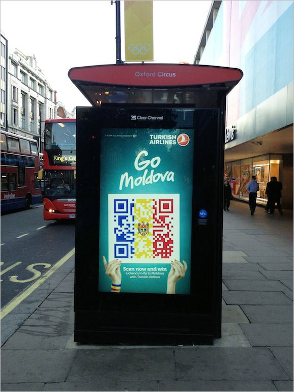 Coincidiendo con los Juegos Olímpicos de Londres 2012, la agencia McCann Estambul realizó una campaña de digital-out-of-home para Turkish Airlines que buscaba atraer a los millones de turistas que visitaron la capital británica mediante un diseño de códigos QR que integraban escudos y colores de las banderas oficiales de diversos países.