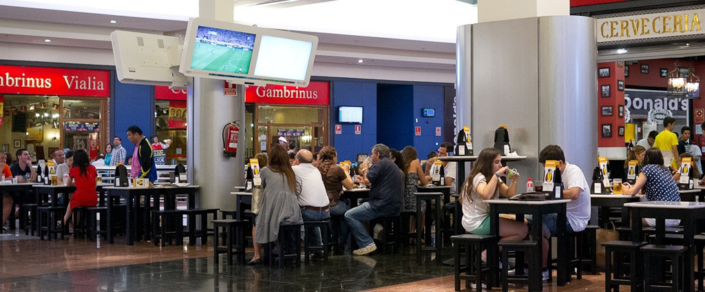 ショッピングセンターへの来客数が減少 40% テレビのフットボール中継中に: 試合時間中のこの人の流入を維持することを目的として, 昨シーズンから, 約 30 のショッピング センターにデジタル サイネージ回路が設置されています, ゴル T ショッピング センター, 有料チャンネル「ゴルTV」の放送が目玉. これらはレストランエリアにある 2 つのスクリーンで、訪問者はそこからサッカーの試合を観戦できます。, 国内でも国際でも, フォーミュラなどのその他のスポーツ コンテンツ 1, MotoGP世界選手権, ACBバスケットボールリーグプレーオフ, ツール・ド・フランス, テニストーナメント…