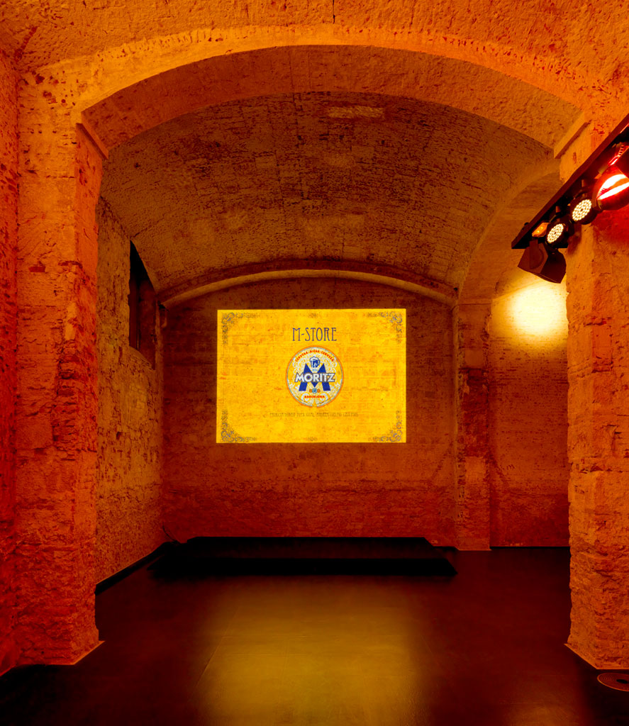 La Concept Store, 彼の側としては, cuenta con objetos únicos e innovadores que transmiten la experiencia Moritz, además de otros productos más convencionales que conforman el catálogo de merchandising de la marca. Sobre el muro lateral de este espacio podemos encontrar una videoproyección de 2,5 × 1,4 metros a cargo de un Christie DHD800 que se encuentra colgado del techo. Este aparato realiza una proyección conceptual sobre una tela, mostrando contenidos relacionados con los productos de la tienda, ファッションショー, 等, creando una doble imagen en la tela y en la pared de piedra que se encuentra detrás de la misma. El Christie DHD800 es un proyector DLP de 1 chip que ofrece 8.000 lúmenes ANSI y resolución nativa Full HD 1920 × 1080. Es uno de los proyectores de doble lámpara más brillantes del mercado y ofrece 10 bits de procesamiento de imagen, rueda de color intercambiable e igualación de color con fundido de bordes en los cuatro lados, siendo ideal para aplicaciones 24/7.