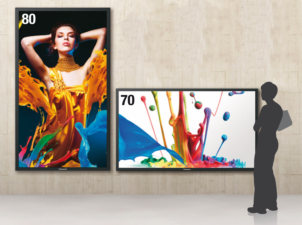 Panasonic ha sacado al mercado las pantallas LCD de gran formato TH-70LF50 y TH-80LF50, の 70 y 80 それぞれインチ, の明るさで 700 cd/m2 y una profundidad de sólo 89 mm. -la más fina del mercado-, lo que permite colocar estos displays en el techo.
