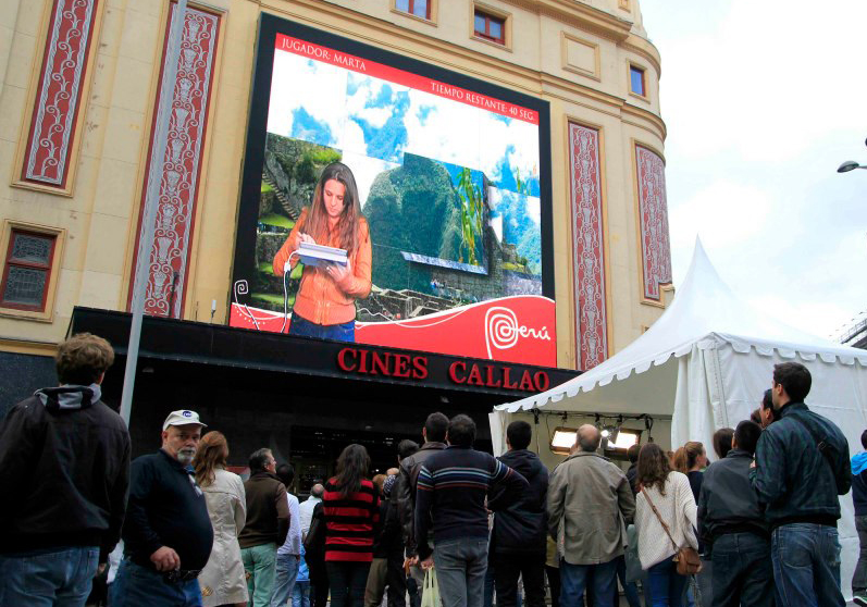 Aprovechando las últimas tecnologías digitales, プロムペルー, アンデス国の観光促進局, tomó por sorpresa a los transeúntes en la Plaza de Callao de Madrid los días 28 y 29 de septiembre con el fin de establecer un contacto personal con el destino mediante diversas actividades interactivas.