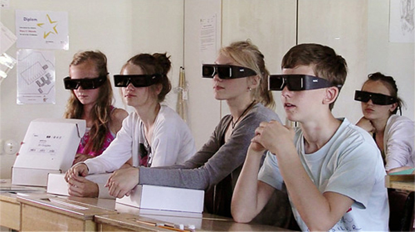 NECとVolfoniがそれぞれ提供するプロジェクターと3Dメガネは、同社が発明したDLPリンク技術に基づいています。 テキサス・インスツルメンツ, 3D の民主化と使いやすさを実現, 特に教育において.