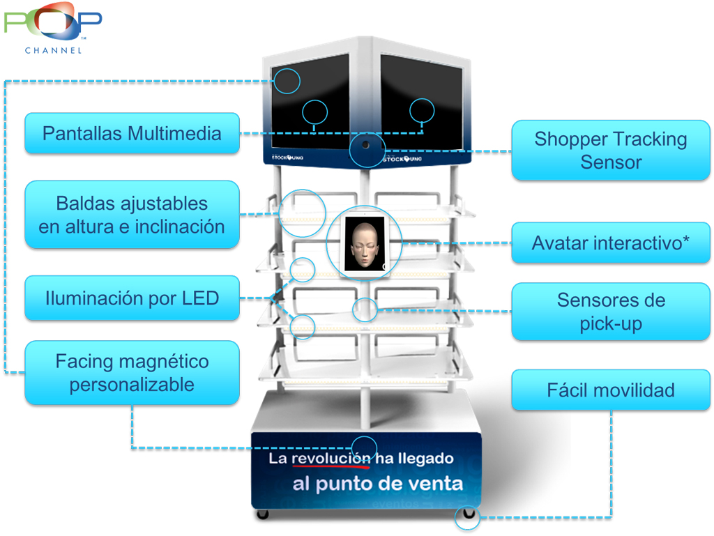 グループについて Stock Uno trae a España una tecnología con la intención de revolucionar el punto de venta: POP Channel. Se trata de una solución tecnológica inteligente que atrae al consumidor a través de su diseño multimedia, analiza el perfil del comprador a través de su potente software y reporta la información de lo que está sucediendo en el punto donde se está realizando la campaña. こちらです, se obtiene un completo seguimiento y control de la acción en cada PdV y se pueden modificar aquellos aspectos que no están funcionando, それ全部, リアルタイムで.