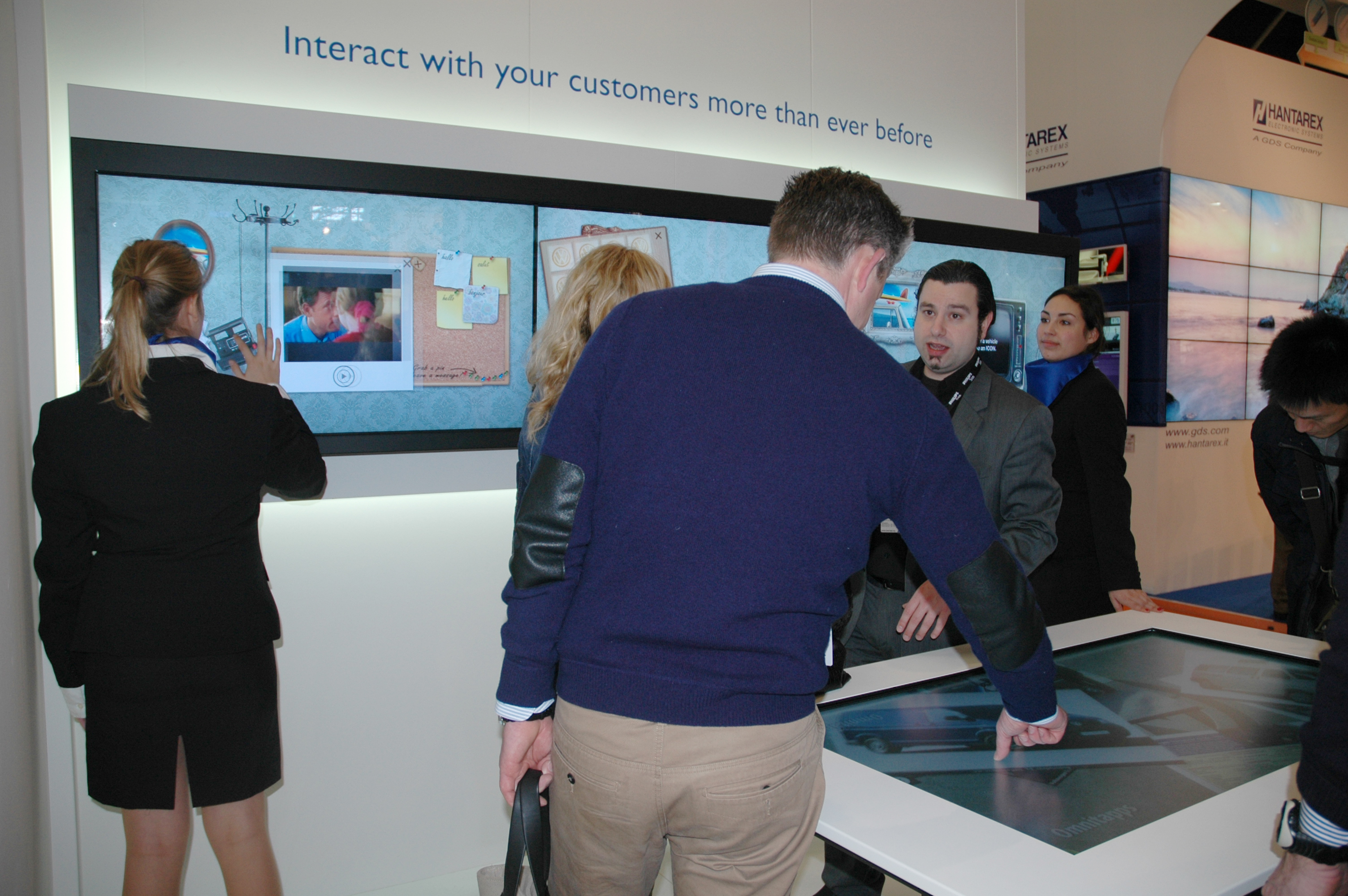 MMD, フィリップス公共サイネージ ライセンス パートナー, Integrated Systems Europe で展示中 (一方) 2013 アムステルダムのいくつかの印象的なビデオウォール - そのうちの 1 つは、RAI メイン会場の入り口で訪問者を歓迎します -, マルチユーザータッチだけでなく、 32 ポイントとマルチユーザータッチキオスク 120 (47″).