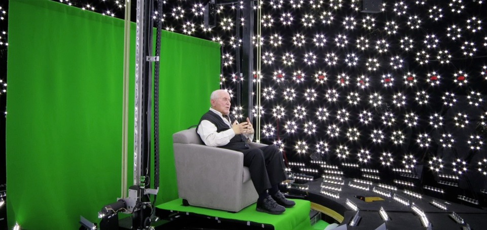 ホログラム効果を実現するために、人物の全身をさまざまな角度から記録し、システムで投影します。 ライトステージ.