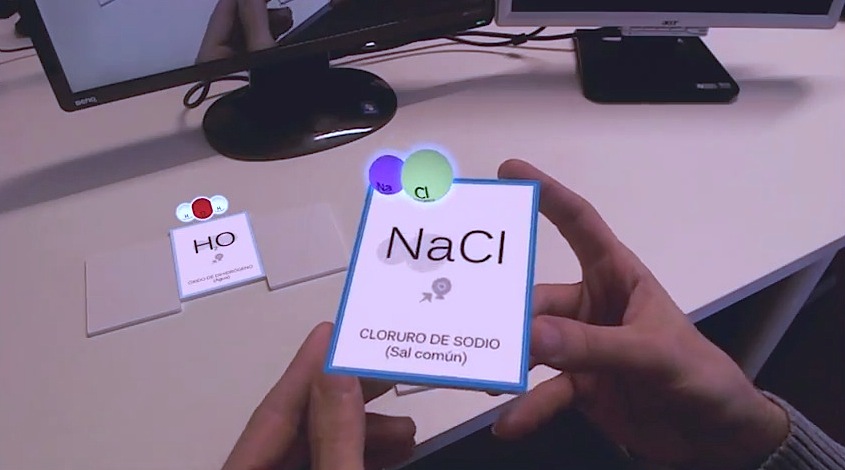 Cada elemento lleva asociado un marcador diferente que el sistema reconoce, cuando el usuario acerca dos elementos compatibles se crea el enlace y aparece el nuevo compuesto.