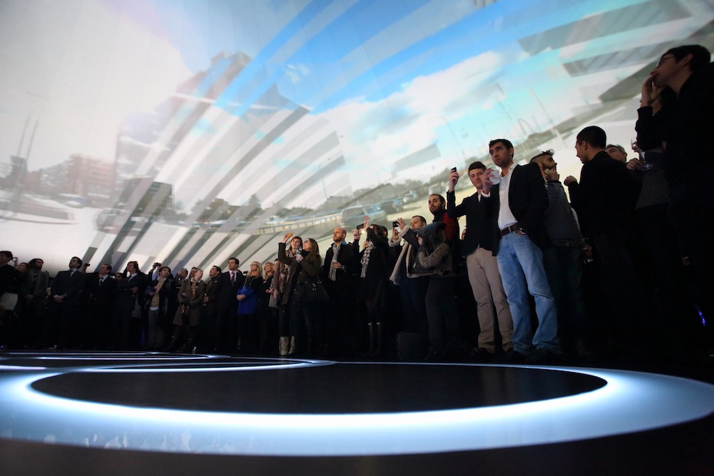 このショーでは、アウディ A3 のテレビ広告を表示する 2 つの Christie MicroTiles ビデオ ウォールも紹介されています。. Christie LX1500 プロジェクターもあります (3 液晶, XGA解像度, 15.000 ANSIルーメン) ドームの外面に突起を作る.