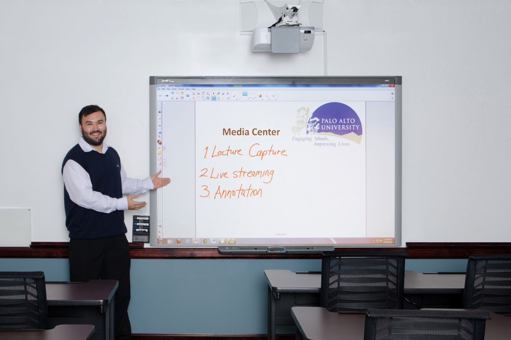 La Universidad de Palo Alto ha incorporado pizarras interactivas, cámaras y otros sistemas de apoyo para proyección, sonido y control de cara a que los alumnos de post-grado puedan seguir sus clases de cualquier lugar.