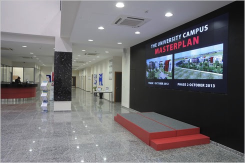の セントラル ランカシャー大学 (UCLan キプロス) 入り口にはマイクロタイルシステムで構成されたビデオウォールがあります。 クリスティ このメーカーの LCD プロジェクション システム, パートナーによって統合される ALA装置 のエディションで「最も革新的な教育施設」として認められています。 2013 EMEAから InAVation賞.
