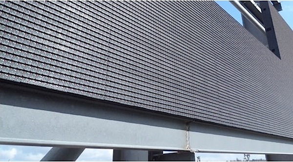 Consta de dos paneles, uno hacia el norte de 35×7,2 metros y otro hacia el sur de 30×7,2, の表面を表す 468 metros cuadrados de LED.