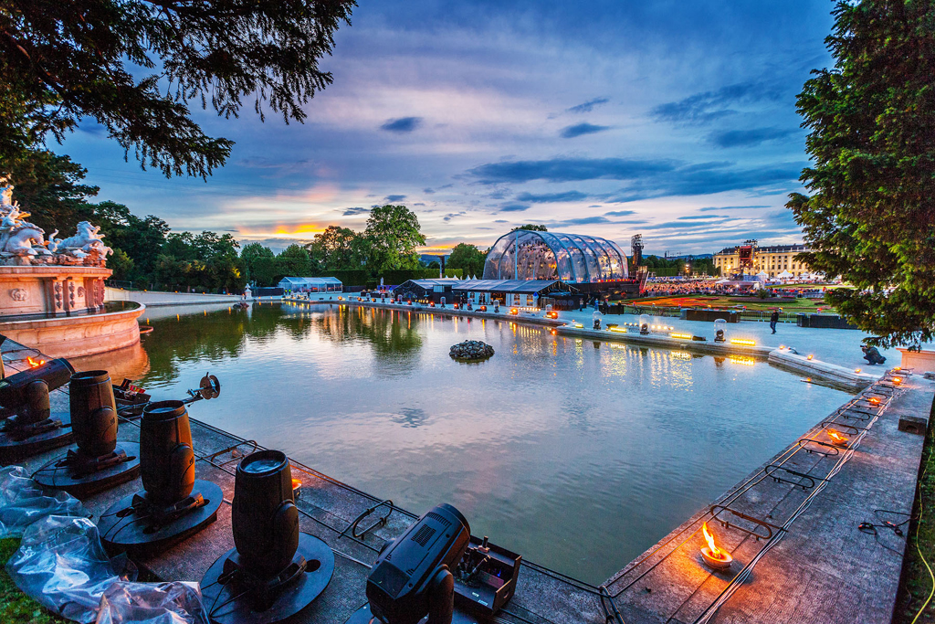 El diseñador Krammer utilizó las luces de Robe para iluminar los jardines del Palacio de Schönbrunn donde se celebró el Concierto de una Noche de Verano de la Orquesta Filarmónica de Viena.