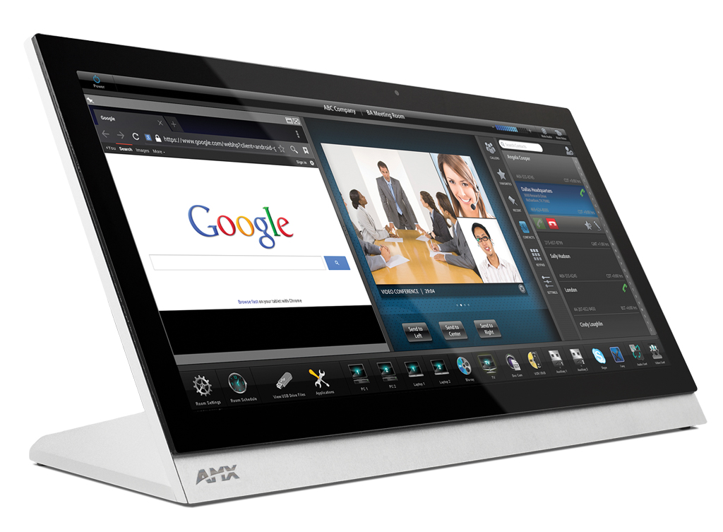 Estos displays de AMX ofrecen la opción de poder actualizar el touch panel desde una URL de la red interna e incorporan un navegador web y visores de documentos para simplificar el acceso y la presentación de documentos durante las reuniones.