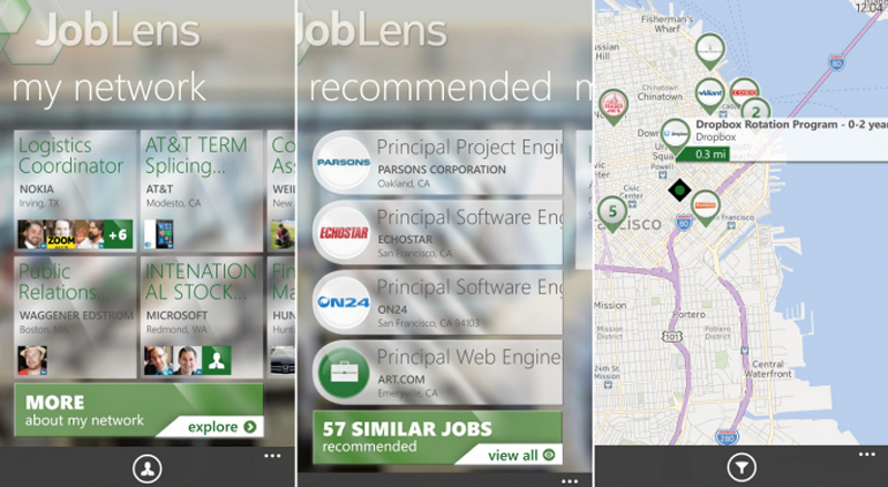 Haciendo uso de la geolocalización, JobLens ayuda a localizar a las personas de la red social que pueden ponerle en contacto con el departamento de recursos humanos de la empresa que oferta el empleo y ubicar su dirección para facilitar el mejor camino para llegar a la entrevista. 加えて, esta app también permite crear y enviar el currículo a las empresas que se desee.