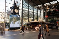 JCDecaux ha instalado dos paneles HD de señalización digital en la Terminal 1 del aeropuerto internacional John F. Kennedy de Nueva York. Estas pantallas, que ofrecen contenidos totalmente sincronizados, mide más de 15x 7 metros cada una y están colocadas estratégicamente, por encima de la entrada de seguridad. このようにして, son vistas por todos los pasajeros que pasan por allí.